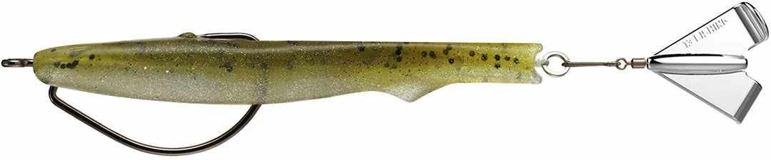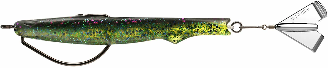 The 13 Fishing Motor Boat is a unique lure that combines a pre-rigged weedless TPE soft plastic jerkbait with a hard prop buzz blade. This innovative design effectively allows you to throw a buzzbait into places where you previously had to worry about weeds and snags. Molded with a slender profile baitfish body shape, the 13 Fishing Motor Boat uses a disruptive buzz blade attached to the rear of the bait, which gives it the ability to slither through vegetation and cover without fouling the blade or snagging the open hook like a traditional buzzbait. Its frameless design and compact profile also reduce wind resistance, allowing you to make long, accurate casts with ease.
