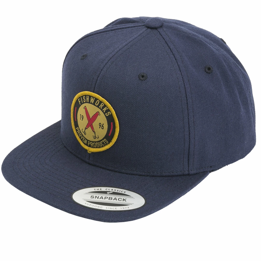 - The Fishworks FWX Snapback Adjustable Flatbill Cap features Multi-Camo or Navy Blue coloration and a cool Fishworks lure logo.