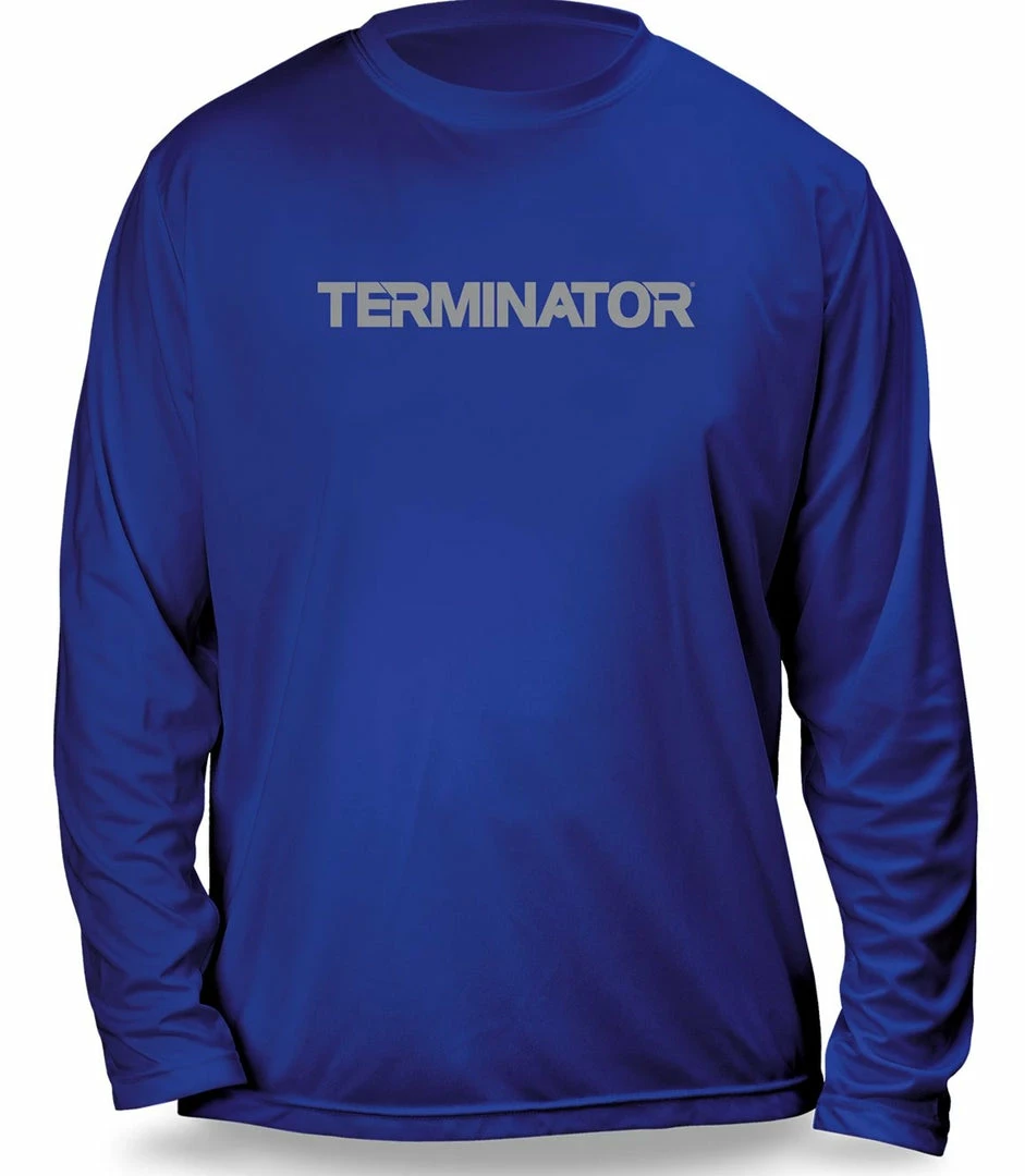 - The Terminator Core Long Sleeve Logo Shirt is a polyester performance sun shirt.
