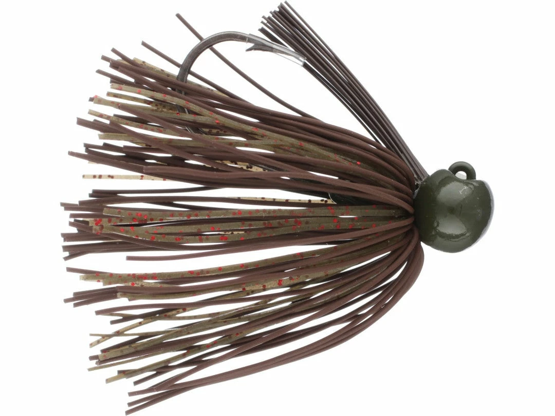Bass Patrol Round Rubber Western Football Jigs are skirted bass football jigs made with round rubber (as opposed to silicone, which most jigs these days use). The round rubber produces excellent underwater undulating action that draws strikes when other jigs don’t. This lively action really shines in cold water too, where silicone skirts often clump together.
