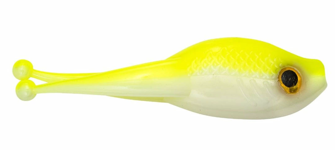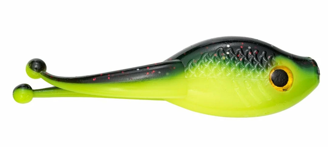 - 2 1/4-inch body features twin ball tails for twice the action.