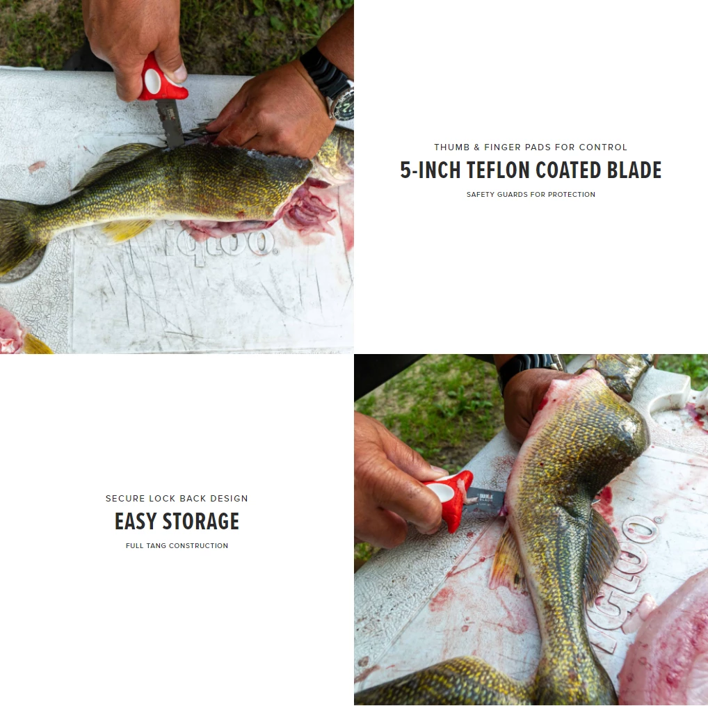 - The Lucky Lew has thumb and finger pads for maximum control while cleaning your catch and safety guards for protection.