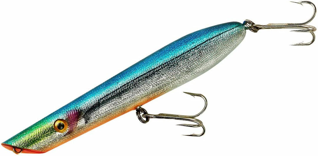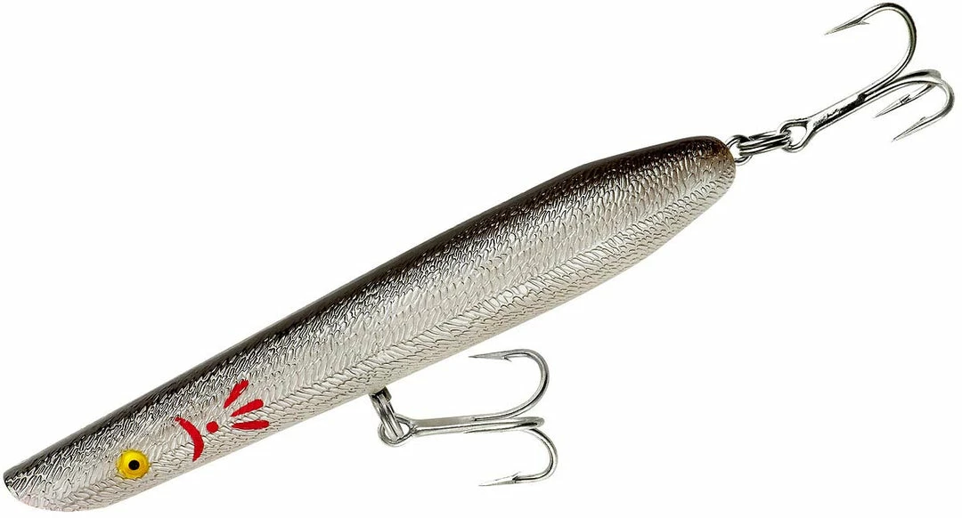 The Cotton Cordell Original Pencil Popper Topwater Lure is THE original pencil popper-style topwater lure. This is one of the oldest and most underrated topwater baits on the market. The larger sizes are a standard tool for striper fishing, while the smaller sizes have action and sound that will elicit strikes from pressured bass.