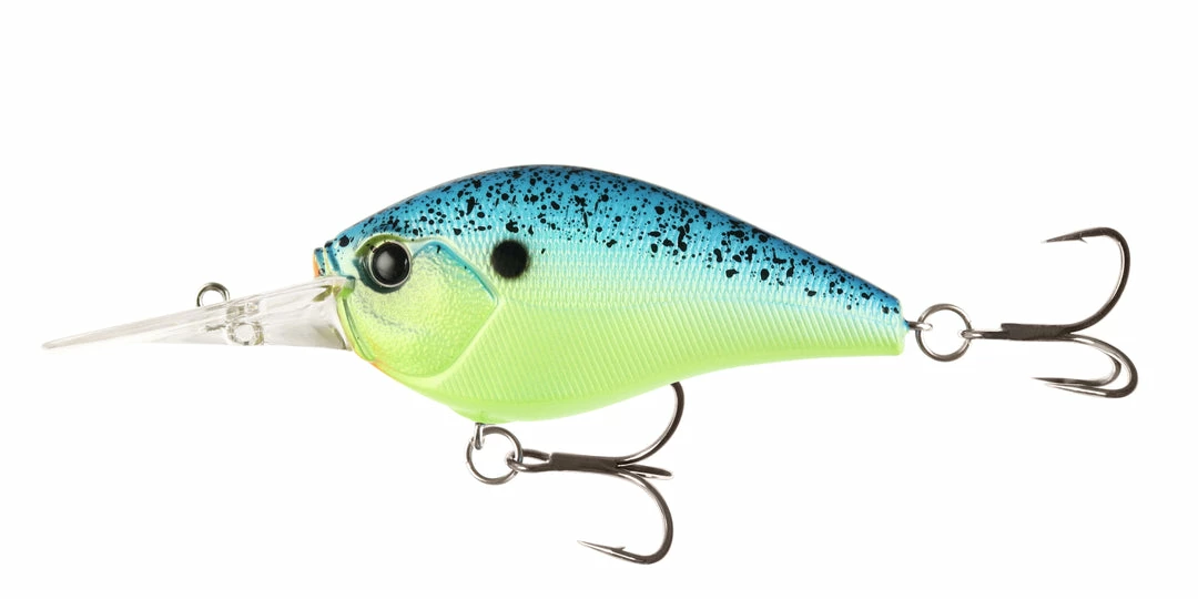 The 13 Fishing Cliff Banger is a floating, deep diving crankbait. These baits are expertly engineered to dive deep fast and get to their designated target depth. They exhibit a wide wobbling action that deflects erratically off hard cover. An internal weight transfer system makes long casts easy so you can get the most out of every retrieve by keeping your lure in the strike zone for longer. Pre-rigged with black nickel treble hooks.