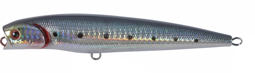 The Daiwa Saltiga Dorado Pencil Floating is a buoyant topwater walking lure design for big game saltwater fishing. This heavy-duty pencil features an open mouth and gill slit design that produces an enticing bubble trail through the mouth and gills. Heavily weighted the Dorado Pencil is perfect for long-distance casting.