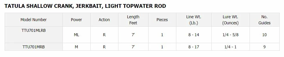 - Available in a Medium (TTU701MRB) or Medium-Light (TTU701MLRB) power rod.