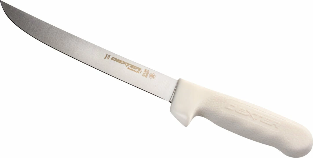 The Dexter S138 8″ Fillet knife is famous for it’s white Sani-Safe® handle. This is the knife every one tries to copy but can’t come close to the durability, edge holding ability and performance of a Dexter knife. This knife features Dexter’s Sani-Safe® handle and proprietary High Carbon, High Alloy, Stain free DEXSTEELâ„¢. The Sani-Safe® handle gives you great control and the ultra sharp blade makes filleting easy. This knife is NSF certified. Made in U.S.A. This is the choice knife for professional fish cutters, check the videos below.