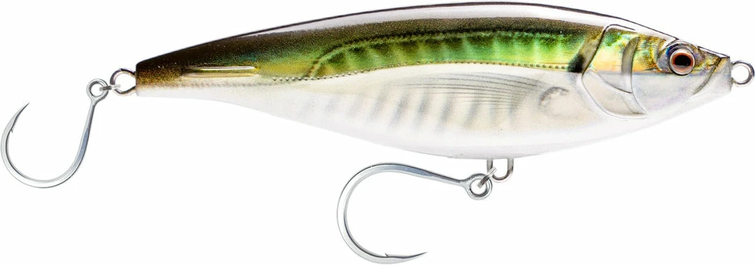 By catering to a wide range of techniques and a wide variety of species, the Nomad Design Madscad 150 Sinking Stickbait takes pride in its versatility. Often regarded as the most versatile lure in the range, it is designed for casting or trolling for wahoo, tuna, albacore, giant trevally, cubera snapper, striper, roosterfish, mackerel, or kingfish. It can be worked slow or fast with long or short twitches of the rod tip or create an erratic swimming action during stop-start-retrieve.