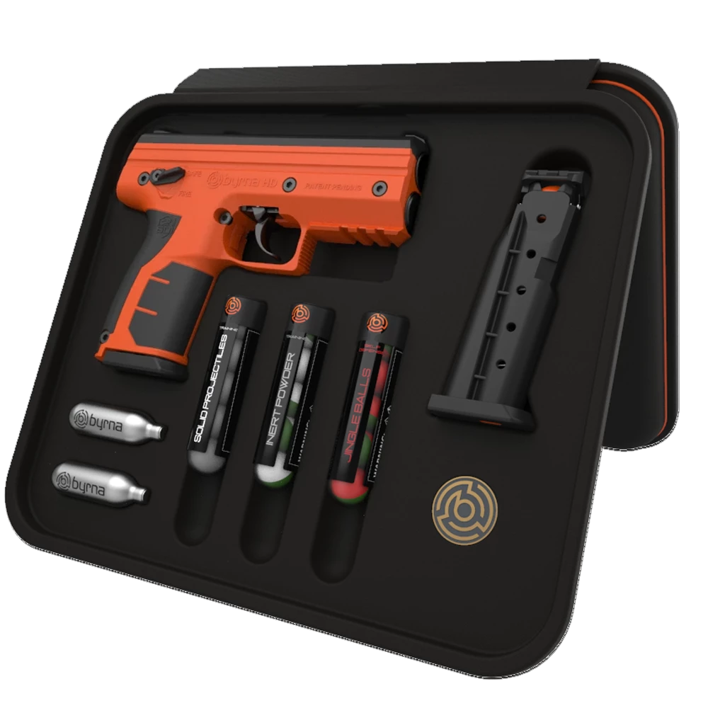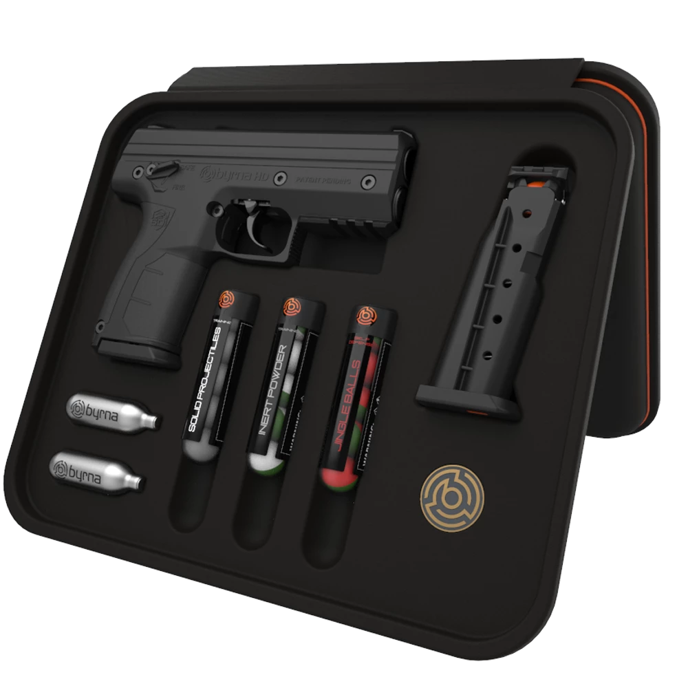 The Byrna HDÂ Pepper Kit comes in a protective, zippered carrying case with everything you need to get started: