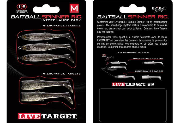 - The LIVETARGET BaitBall SR Interchange Pack Umbrella Rig Parts are specifically designed for the BaitBall Spinner Rig to serve as replacement fish.