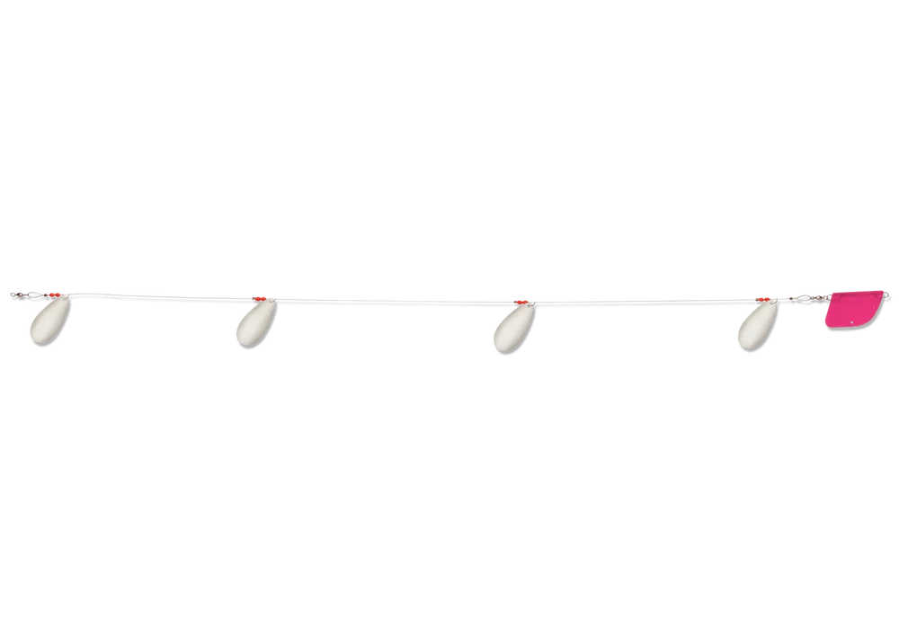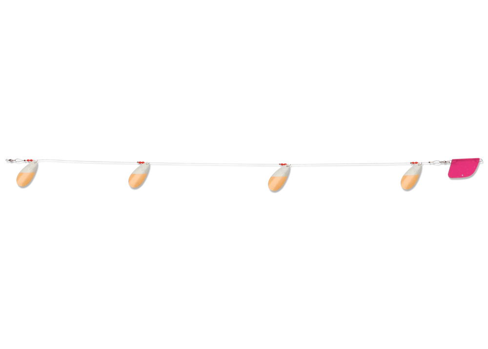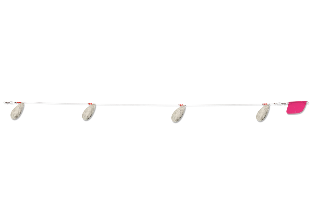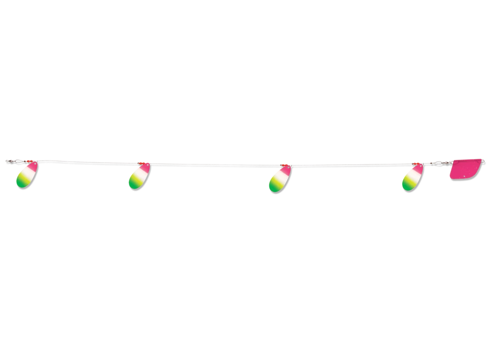 The Cowbell is one of Luhr-Jensen’s most popular lake trolls and is known by anglers all around globe for its productivity. The Cowbell’s unique blade design produces an awesome fish-calling vibration, while Luhr-Jensen premium plating and polishing of the blades offers maximum underwater flash. You’re able draw fish from greater distance, and produce more strikes with Cowbell trolls in your spread. The Luhr-Jensen Cowbell Lake Troll comes completely rigged with 38 inch flexible cable rigging, trolling rudder, and four #4 blades. And with over 10 proven finishes, you’ll be sure to maximize success on your local waters.