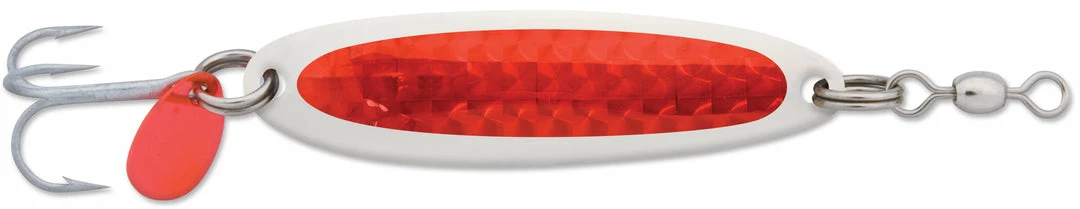 The Luhr-Jensen Krocodile Spoon is a versatile, multi-species spoon lure that can be cast, trolled, or jigged. This 1/2 ounce, 2 3/4 inch model is optimal for small to medium sized freshwater species, including all sorts of trout, from browns and brookies to rainbows and cutthroats, as well as kokanee, coho salmon, and smallmouth bass. Features corrosion-resistant finishes, heavy-duty construction, and red metal flipper tails. Available in a wide range of colors and metal finishes.