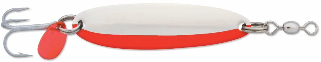 The Luhr-Jensen Krocodile Spoon is a versatile, multi-species spoon lure that can be cast, trolled, or jigged. This 3/16 ounce, 1 1/2 inch model is optimal for small to medium-sized freshwater species, including all sorts of trout, from browns and brookies to rainbows and cutthroats, as well as kokanee, coho salmon, and smallmouth bass. Features corrosion-resistant finishes, heavy-duty construction, and red metal flipper tails.