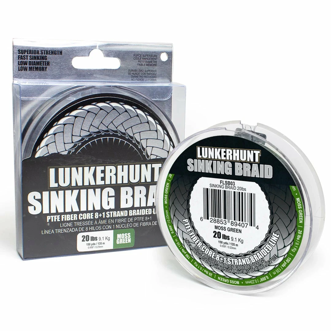 - Lunkerhunt Sinking Braid is 8+1 braided superline that consists of 8 PE fibers braided around PTFE core line.