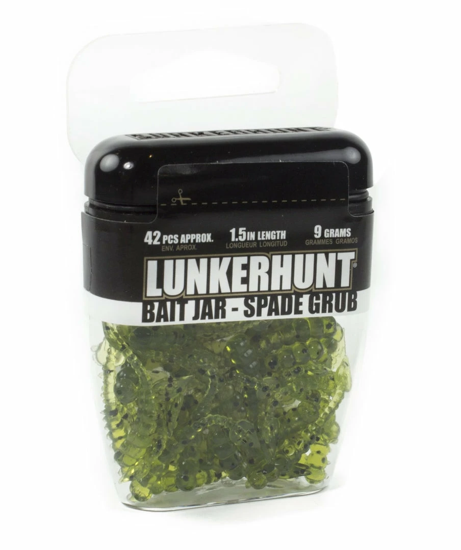 - The Lunkerhunt Spade Grub Bait Jar is a 1/3 ounce (~9 grams) jar of micro plastic baits.