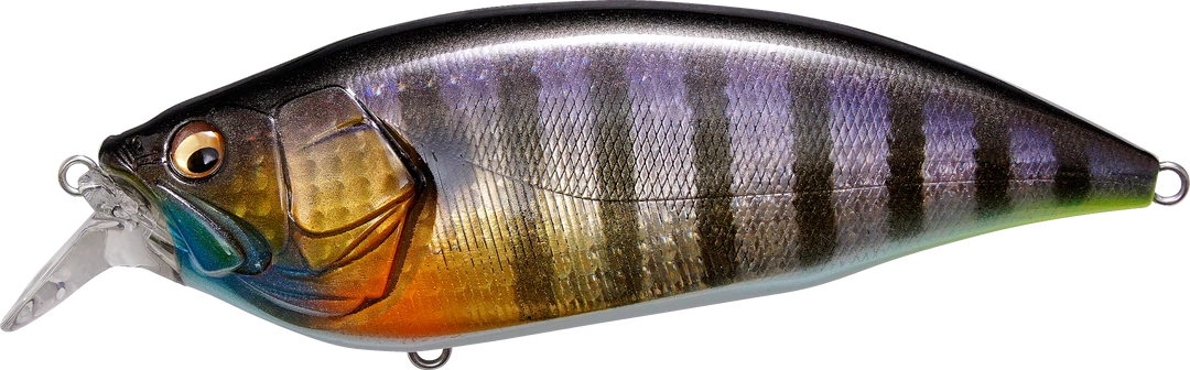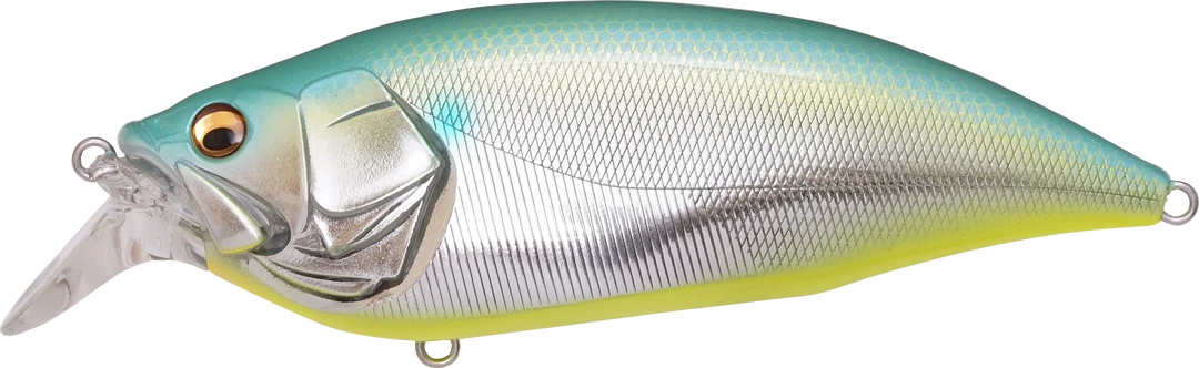 The Megabass Big-M 2.0 is the newest and shallowest running member of the Megabass’ Big-M Series of oversized, flat-sided crankbaits. Measuring 5 inches and weighing 2 ounces, this a big crankbait designed for catching big bass in the 6 foot depth range. It uses a unique scoop-like bill design that channels water to produce a hard rolling and flashing action, making the most of its flat-sided body design.