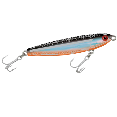 The MirrOlure MirrOminnnow is 3 1/4 inch, 3/8 ounce twitchbait that runs between 0 and 1 1/2 feet below the surface. The MirrOminnow is designed to mimic narrow-bodied coastal baitfish like glass minnows and rain minnows and catch the inshore predators that go after this sort of forage.Â