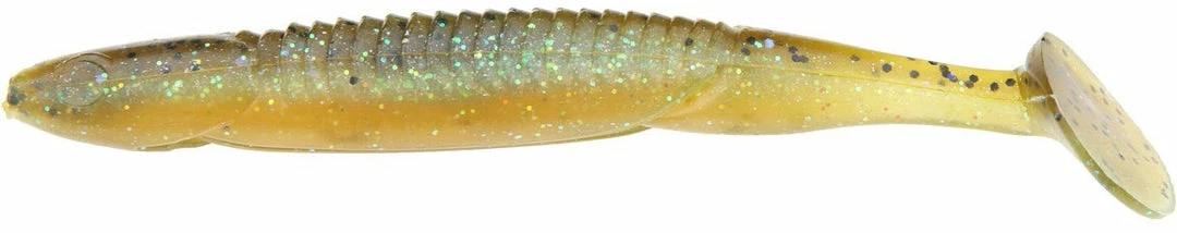 It also has the drawing characteristics of many different types of baitfish and can be used for fishing in the weeds and in clear water. It is designed with a long and slender body and a flat, wide paddle tail that creates vibration to attract fish like no other.