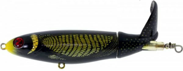 The River2Sea Silent Whopper Plopper 130 is a 5 inch, 1 3/8 ounce model of Larry Dahlberg’s world-renowned topwater prop lure design. Its tail is made of super-tough plastic that flexes right back into place whether it gets chomped on or gets cast into a bridge piling. And since they are molded from high-quality plastic, every single one comes out of the box with the perfect tail size and angle to make a sound that simply drives fish crazy.