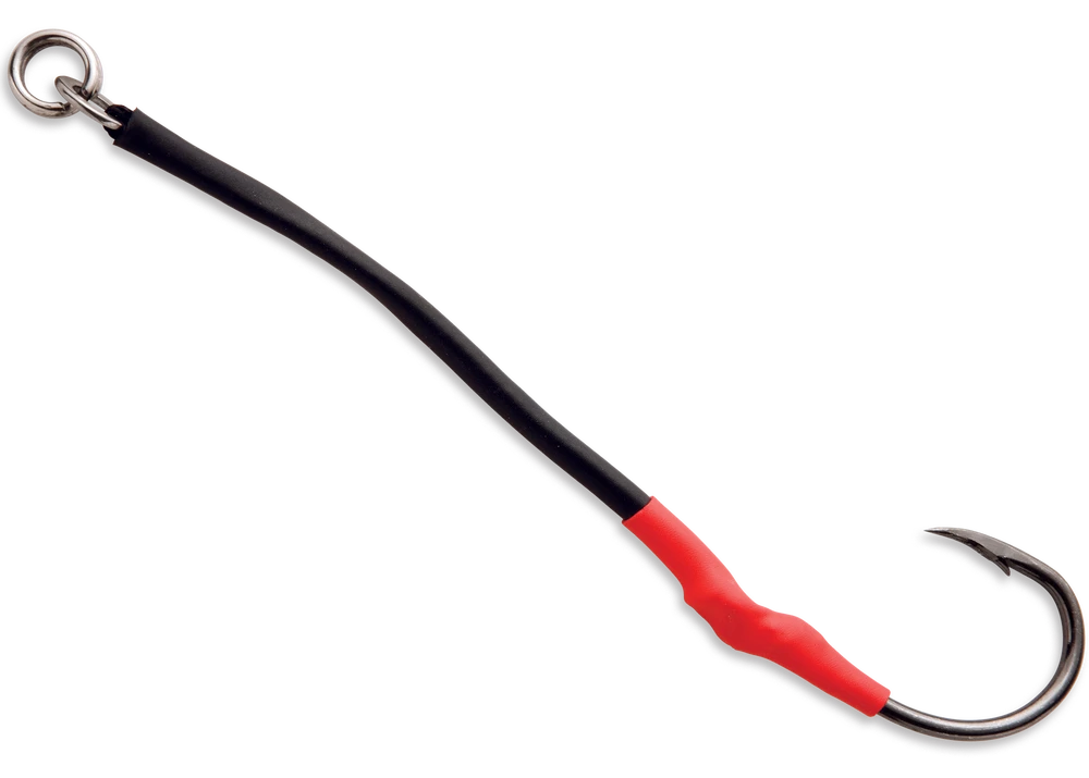 For a flawless approach in blue water jigging, assist hooks are tied with a swinging chord and rigged on the top of the lure. The Williamson Single Assist Hook just makes everything more efficient! Constructed from a durable black nickel alloy connected to a Dacron leader, the fish which bit cannot use the weight of the hook as a lever to throw it off. It also features a protection tubing to prevent chafing.