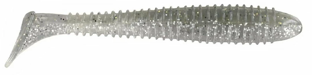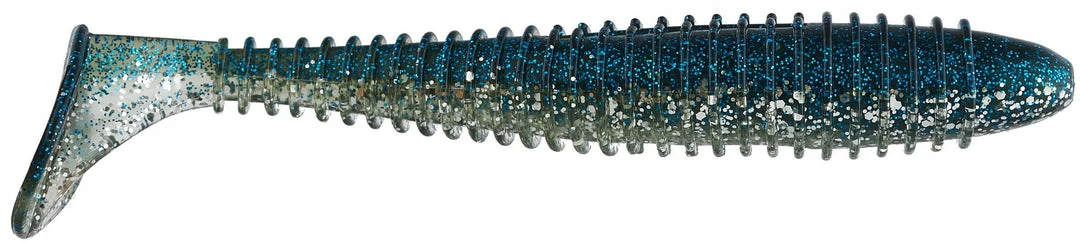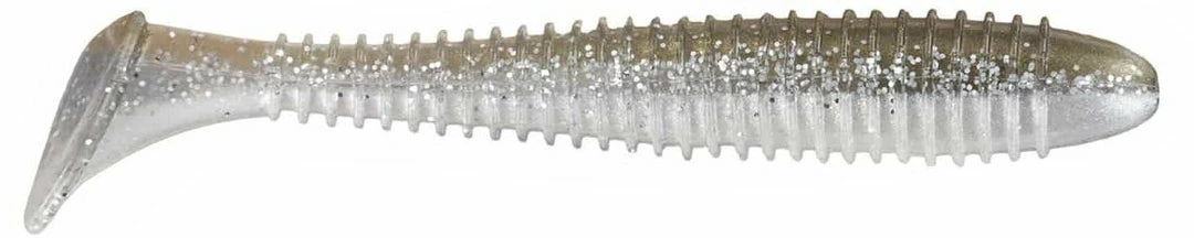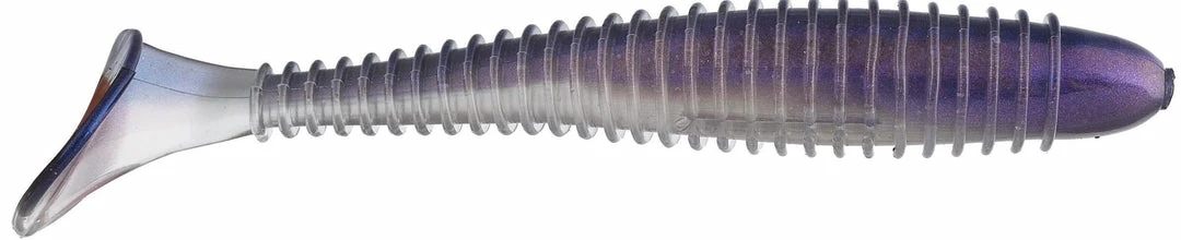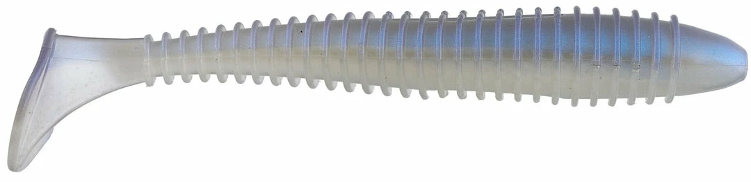 - Bait’s ribbed body displaces water while the swimming paddle tail generates a big bass-attracting kick.