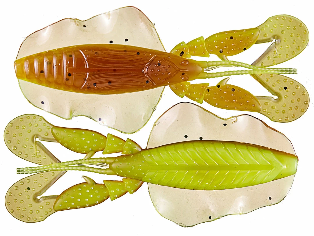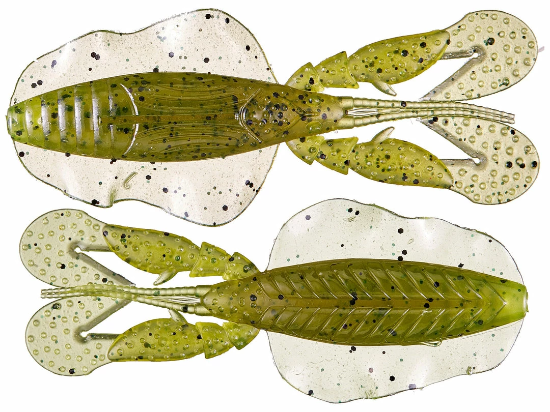 The Chasebaits Love Bug is 4 inch soft plastic creature bait that features the same proprietary “rolling hood wings” that made the Chasebaits Flip Flop a fast favorite among bass anglers. This action-packed crawfish profile creature bait boasts a variety of life-like creature features beyond just the rolling hood wings, including inverted “Rapid-Vibe” crazy claws, segmented antennae, eyes, and unique insect body ripples.