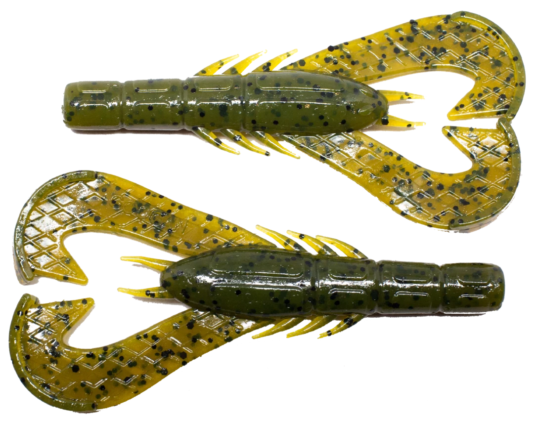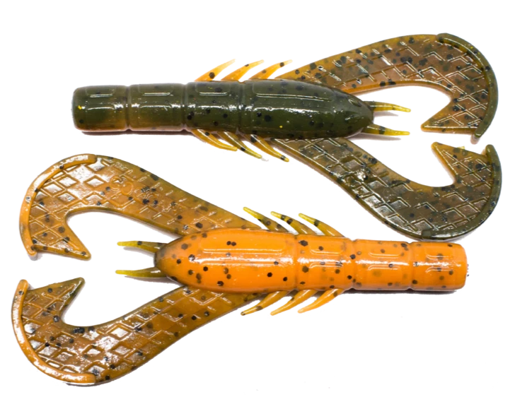 The Googan Baits Krackin’ Craws are 4 inch soft plastic craws. These craws are perfect for a variety of applications. They feature oversized pinchers with raised flanges that generate a hard thumping action and powerful vibration with a molded realistic crawfish body shape. Additionally, they feature small side legs that produce a very subtle and natural movement, even when the bait is not moving to entice wary bass into biting.