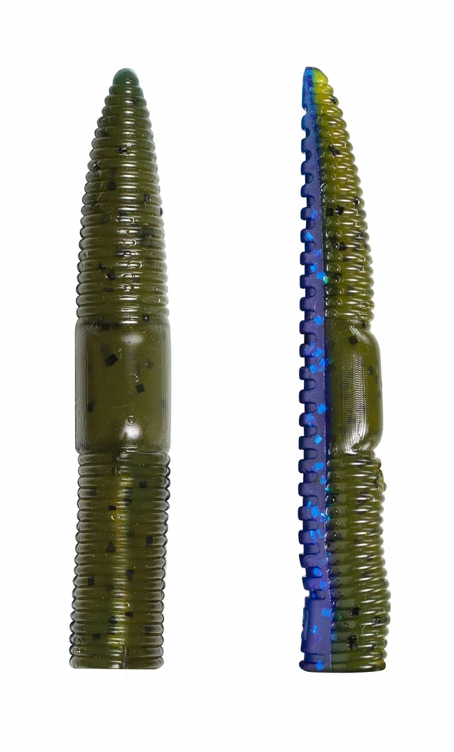 - Available in 6 staple fishing colors including Black Blue Fleck and Green Pumpkin.