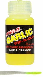 - Spike-It’s Garlic Scented Dip-N-Glo is a lure dye specially designed for dipping soft plastic lures to instantly dye and add scent.