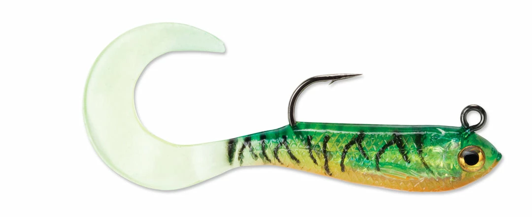 The Storm WildEye Curl Tail Minnow is a 3 pack of minnow-imitating soft body curl tail swimbaits. Specially designed to attract all species of freshwater gamefish (and small saltwater species too), the action of the curl tail is the key. Fish ’em fast or slow, shallow or deep, these pre-rigged natural beauties really work. All sizes come pre-rigged on a premium VMC hook with a chemically sharpened needle point. Available in 6 colors and 3 sizes (2, 3, and 4 inch) to mimic a wide variety of forage.