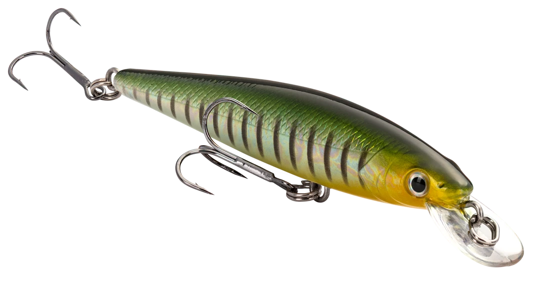 The Strike King KVD 100 Series Jerkbait is a new smaller size of the existing KVD Series 2-Hook Jerkbaits that measures 3 1/2 inches and weighs 1/4 ounce. Developed by Kevin VanDam during an extensive testing period, the KVD 100 is designed to be a very finesse-oriented hard bait that exhibits an erratic wiggling action and wide side-to-side motion when jerked. Diving 2 to 4 feet with a suspending buoyancy, the KVD 100 is a must-have for when you’re fishing a tough late Fall/early Winter bite and need to downsize your profile.