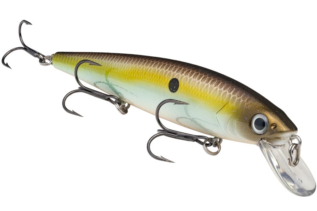 Developed by Kevin VanDam himself after years of testing, the Strike King KVD 300 Jerkbait is a 4 3/4 inch suspending medium diving jerkbait that weighs a 1/2 ounce and runs between 4 and 7 feet. KVD’s goal in developing this lure was to design a jerkbait with extremely wide and erratic side-to-side action with a price tag that doesn’t feel like highway robbery upon checkout. And he really hit his mark with this one: it does a great dying baitfish imitation on a rip-pause-style retrieve and comes in loads of great colors, from exotic and flashy to natural and subtle.
