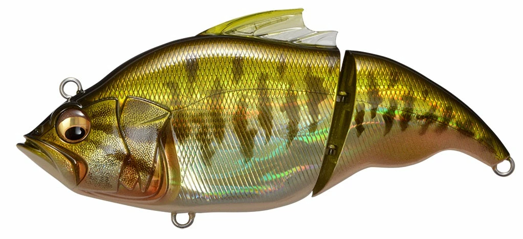 The Megabass Vatalion 190 is a larger (7 1/2 inch – 4 3/4 ounce vs. 4 1/2 inch- 1 1/2 ounce) version of the standard Megabass Vatalion jointed hard body swimbait. Specially built to mimic panfish like bluegill, perch, and sunfish, one of bass’s preferred forage baitfish, it has a meaty profile and seductive action to attract big bites from trophy bass. It comes tuned to respond well to retrieve speeds all across the spectrum: With slower retrieves, its jointed body exhibits sharp, quick turns for pinpoint movement through grass bed channels, around submerged weeds, and along structure; With faster retrieves, it tightens up and delivers a hard-hitting, high-pitch rolling action that displaces an ample amount of water and attracts predators from a distance.