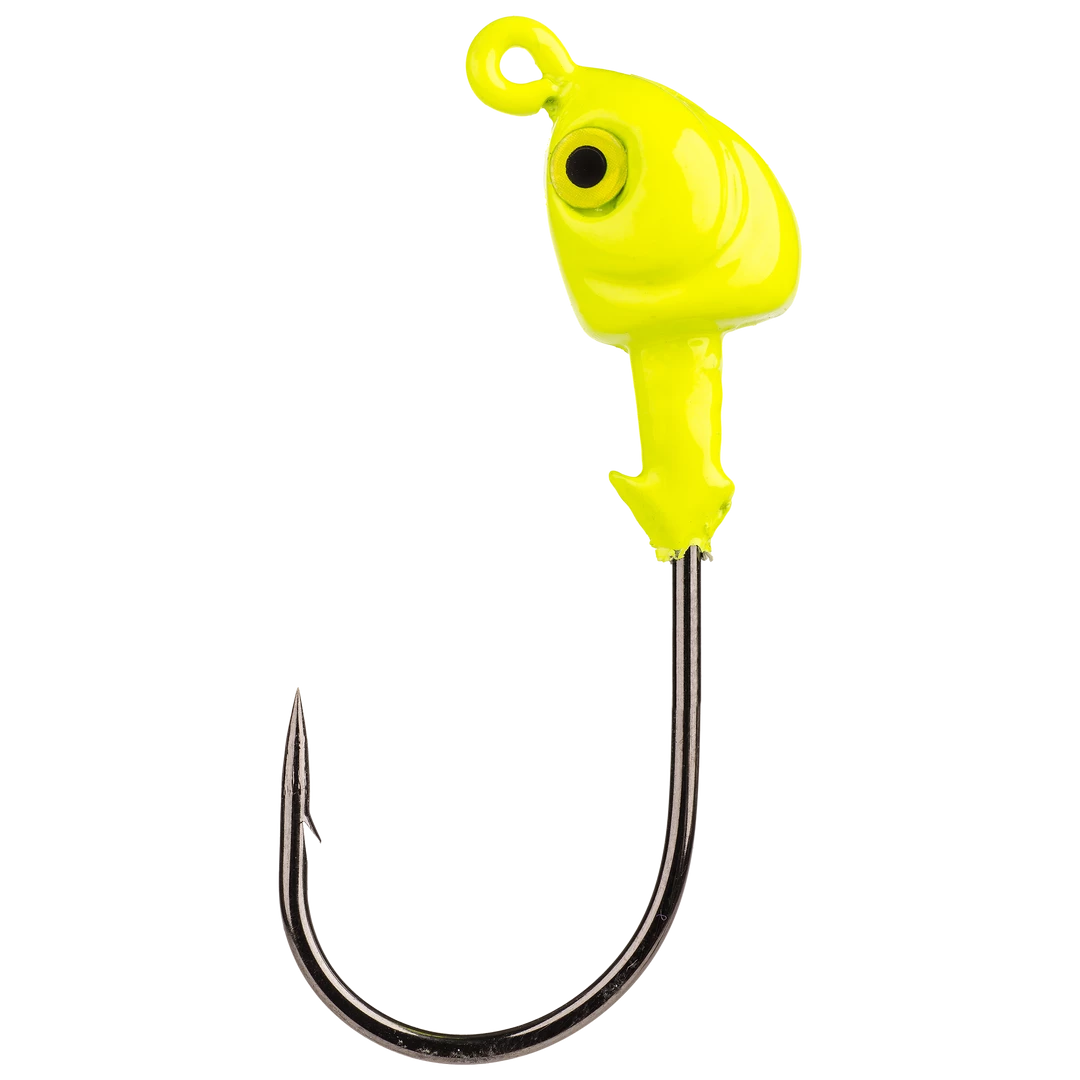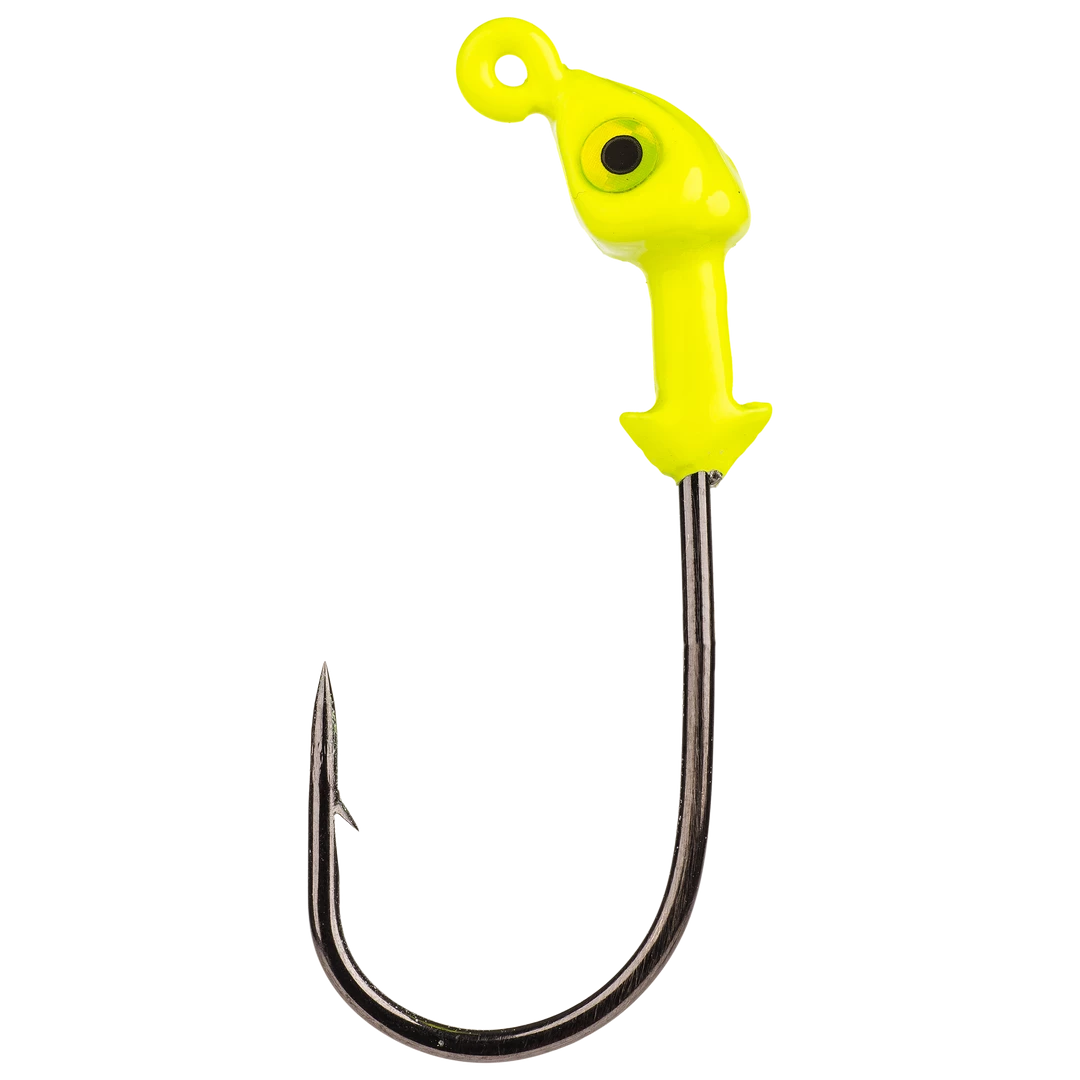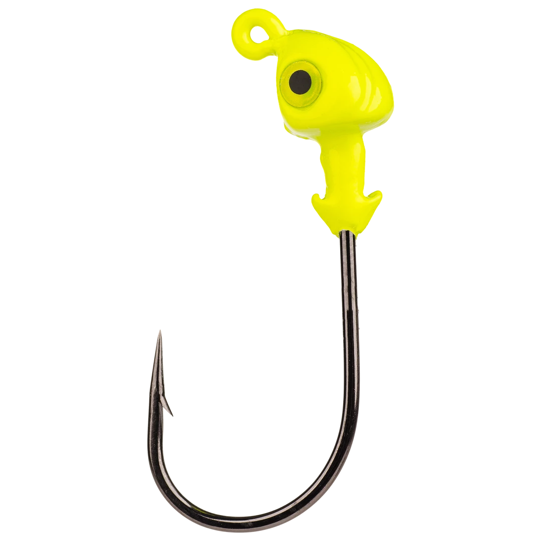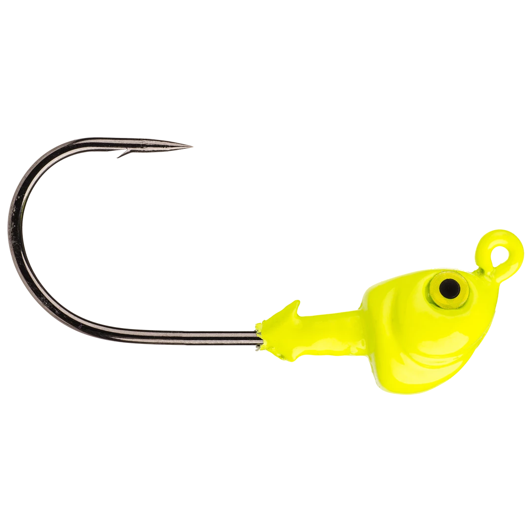 The Strike King Saltwater Flats Jig Head is a boxing glove style swimbait jighead from Strike King’s Redfish Magic series of inshore saltwater fishing tackle. In addition to the classic boxing glove shape, the Flats Jig Head has 3D molded eyes and a dual barb baitkeeper to lock soft plastics firmly in place. This awesome head design is built around a saltwater-friendly, chemically-sharpened black nickel hook for reliable hook sets capable of bringing in feisty inshore predators like redfish and sea trout.