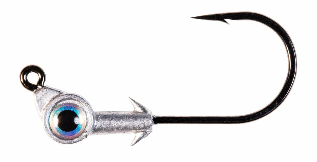 Perfectly balanced to track true at all retrieve speeds, the Eye Strike Swimbait Eye Jighead matches up with an array of popular 3- to 6-inch swimbaits, including the MinnowZ™, SwimmerZ™, and Scented PaddlerZ™. Built on heavy-duty 3/0 and 5/0 VMC® hooks, these jigheads sport a streamlined nose-forward head design that minimizes snagging and fouling. Dual, sharp keeper barbs grip ElaZtech® and traditional plastisol-based soft plastic baits and hold them tight to the jighead.