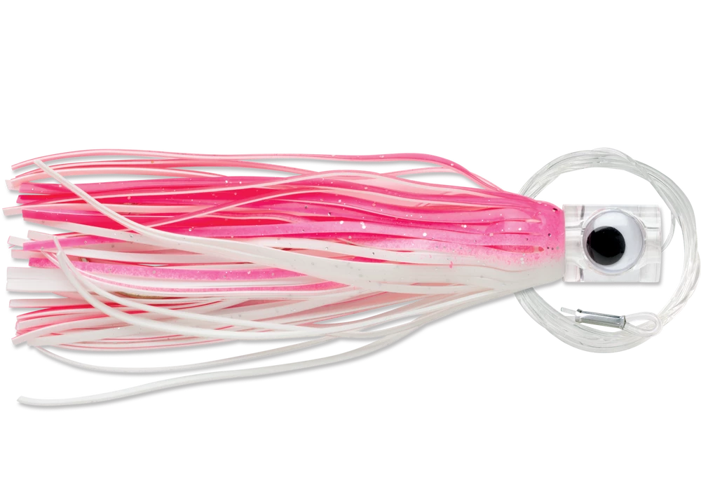This great dolphinfish and sailfish bait is equipped with a Sufix Mono Leader (5 foot – 60 pound test for the 4 1/2 inch size (DCR4); 5 foot – 130 pound test for the 6 inch size (DCR6)) and a VMC Perma Steel Hook (Size 4/0 for the 4 1/2 inch size (DCR4); Size 8/0 for the 6 inch size (DCR6)).