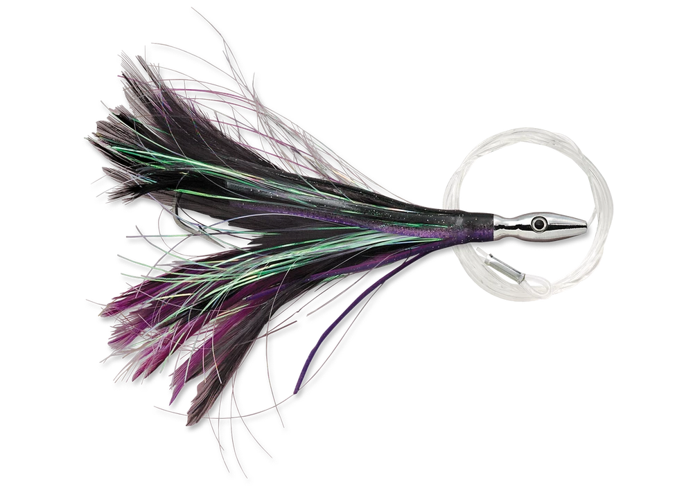 Combine the supple touch of feather with the lustrous magic of metal flash as you arm yourself with the Williamson Rigged Flash Feather. The soft feather bundle creates an irresistible underwater movement that entices various species such as bonito, mackerel, bluefish, small dorado, and tuna. The metal head adds a highly noticeable shine that intrigues the predators with the moving stray of light in every twist and turn.