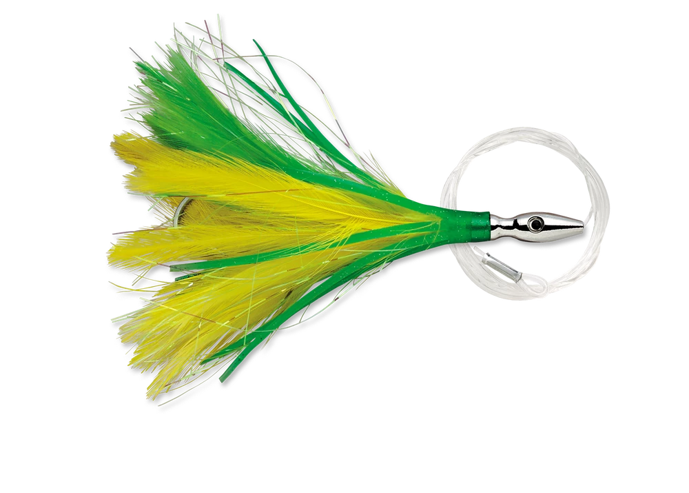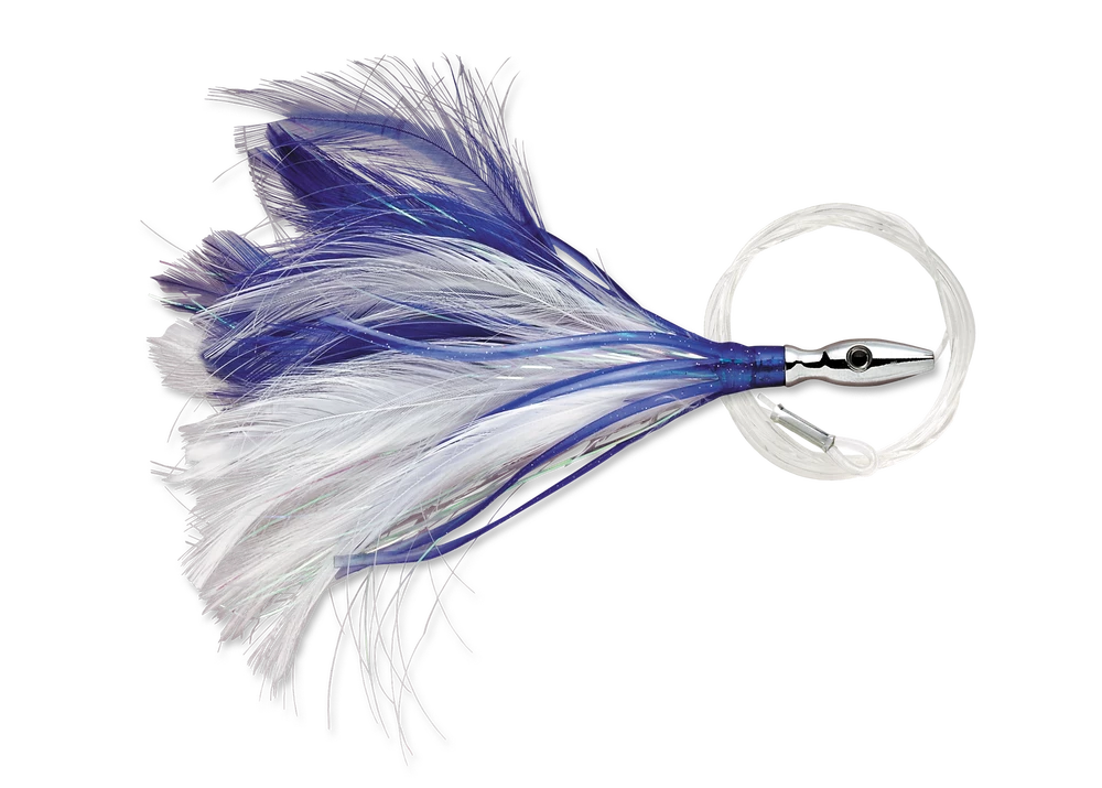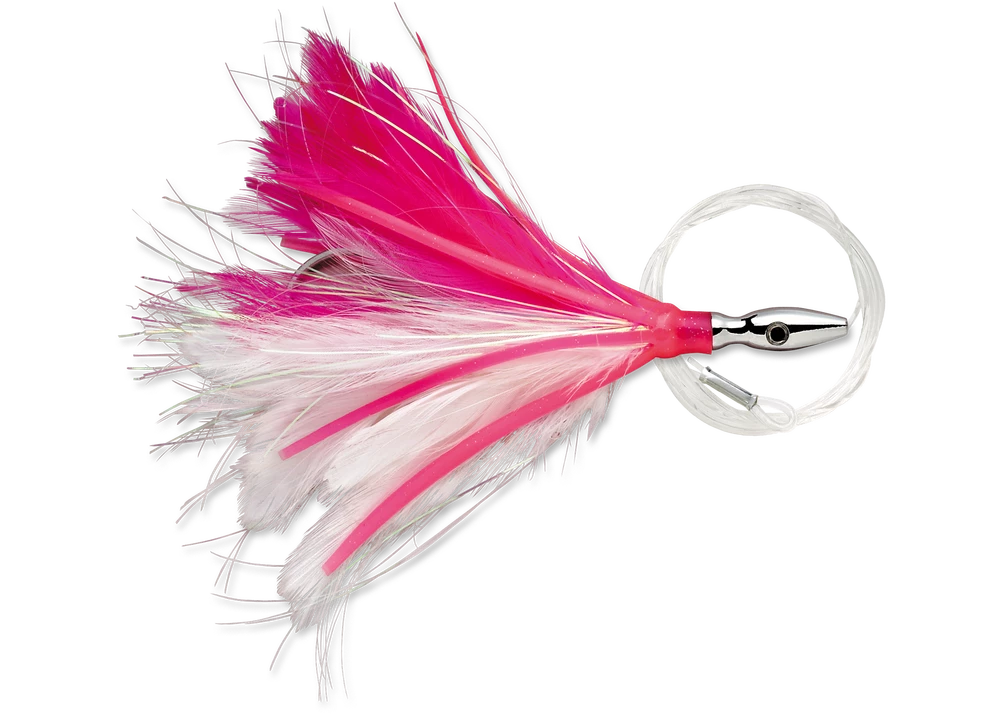 Equipped with a Sufix Mono Leader and a VMC Perma Steel Hook, the Williamson Rigged Flash Feather is available in 4 colors and 3 sizes (3 inch, 4 inch, and 5 inch).