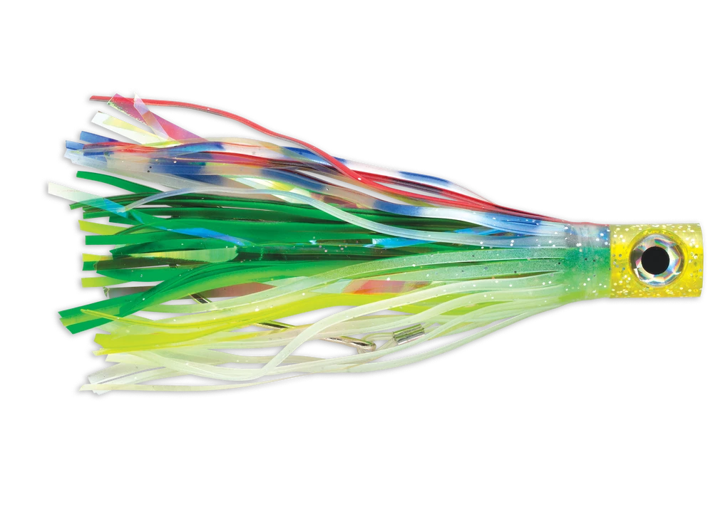 For added attraction from unsuspecting predators, a lifelike, flashy skirt made from PVC with is attached to the rig. Equipped with a 5 foot, 130 pound test Premium Sufix Leader and VMC 8/0 Perma Steel Hook, the Williamson Soft Dorado Catcher is available in 8 colors.