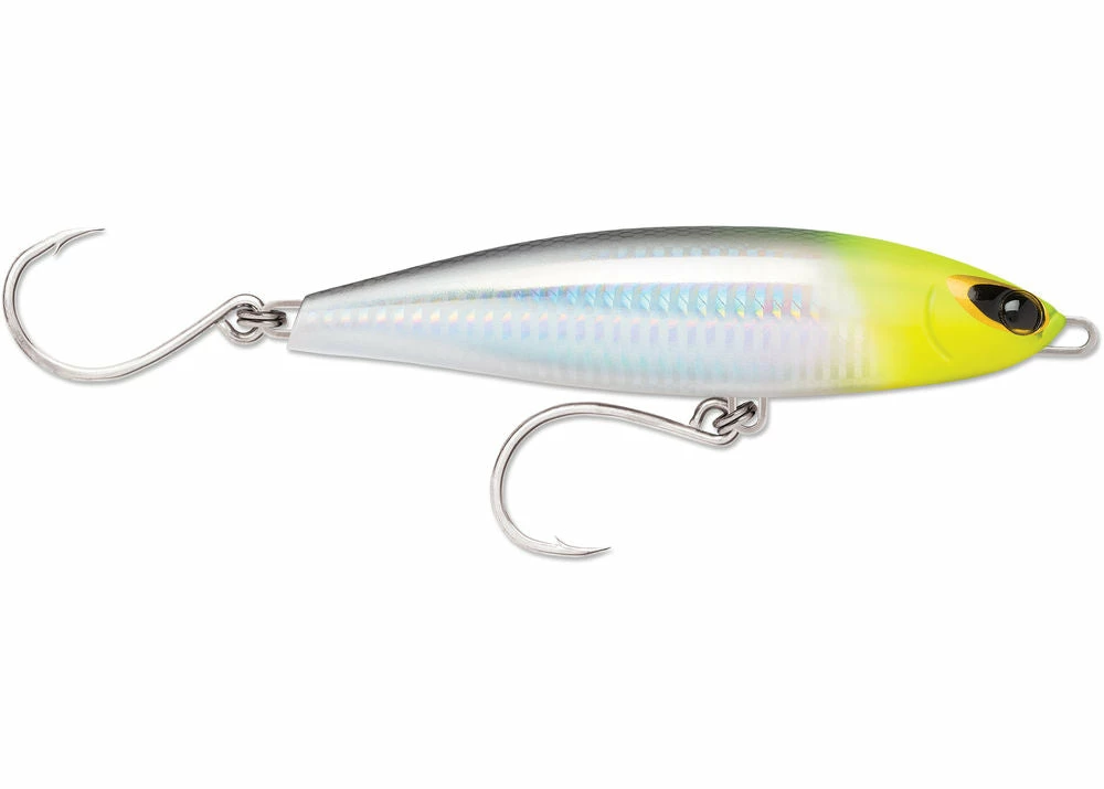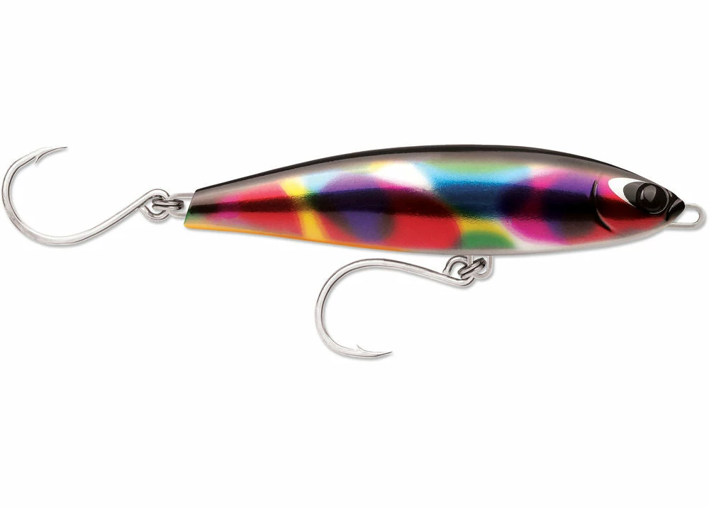 It is also designed to allow for a wide array of applications: pop on the top, slash, and stall, rip and stop, and classic walk-the-dog, be it fast or slow retrieve. It also features precision-cut hook hangers. Equipped with VMC Inline Single Hook and heavy-duty oval split rings.