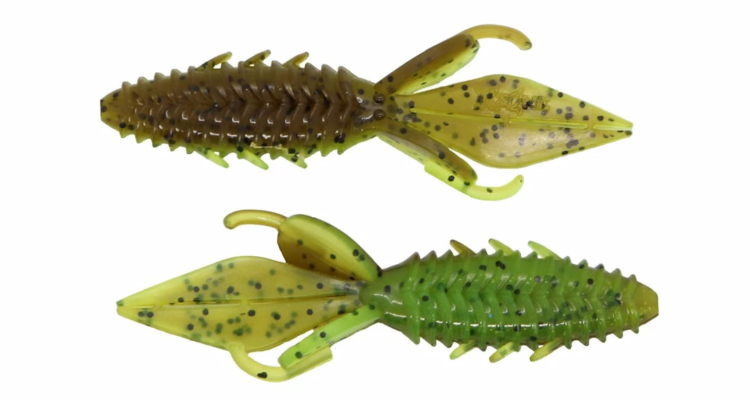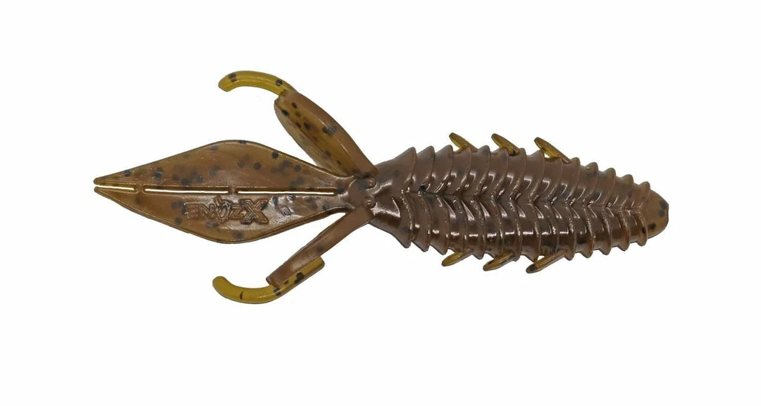 The Xzone 3.5 inch Adrenaline Bug Jr is a smaller-sized Adrenaline Bug with lots of action and vibration. Like its bigger brother, the 4″ Adrenaline Bug, the NEW 3.5″ Adrenaline Bug Jr. is designed to provide a great creature bait presentation that bass love! The floating qualities found in this bait make it 100% NEDable. Specially designed soft body and floating claws make this bait irresistible to bass. Once they feel this soft bait in their mouth – they will not let go. The specialized plastic, super fine salt and scent infused formula used to make the Adrenaline Bug allows the claws to float at rest for a time, mimicking the defensive stance of a real crayfish. All these features produce a creature bait that swims, hops and undulates in the water creating a NEW unique sonic signature and vibration that BASS LOVE!!! The Adrenaline Bug Jr is extremely versatile. It is available in proven fish catching colors to cover a wide variety of applications, including flipping, pitching and punching. Available in 12 different colors.