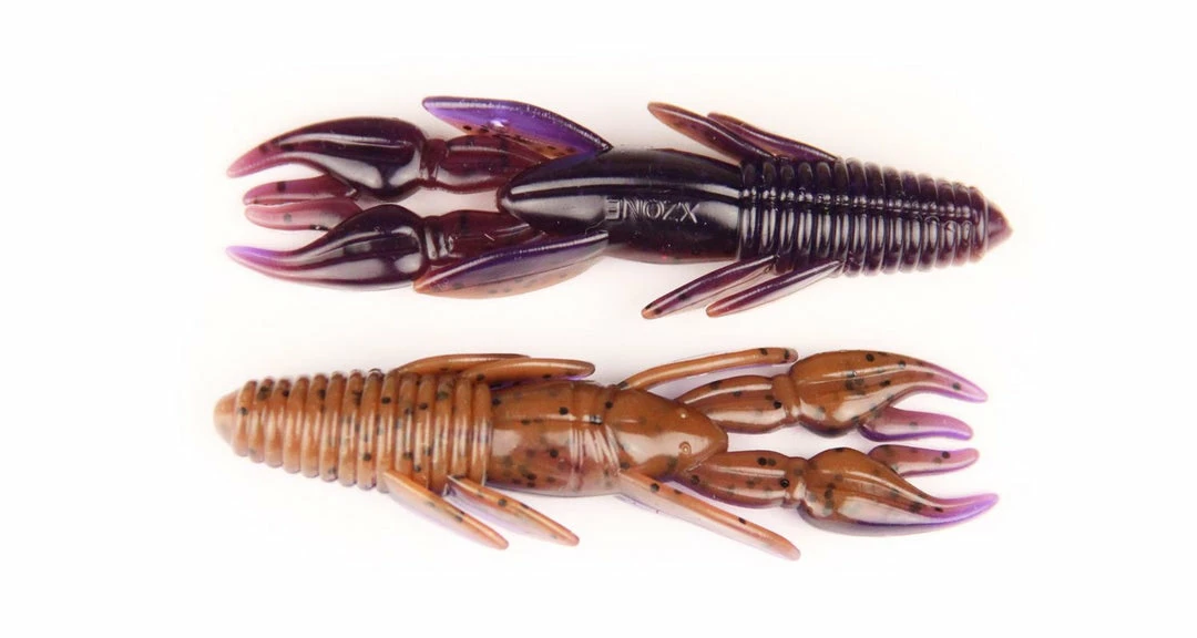 The Xzone 3.5 inch Punisher Punch Craw is a heavy duty craw for punching vegetation. It has a durable, soft, super fine salt-impregnated body, with a unique ribbed thick body and 3 rows of forward facing appendages followed by claws that offer a realistic texture that Bass Hold On To! This specialized design and formula allows the bait to slip cleanly in and out of the cover with ease. The compact profile and design of the X Zone Punisher Punch Craw makes it perfect for flipping, pitching, punching matted vegetation, pads, tules, cane and wood. The X Zone Punisher Punch Craw has a V-groove line running down the middle of the under body to help you center your hook for the presentation you pick and also helps you get a solid hook set every time. The conical shape on the top of the body allows for any style or type of bullet weight to fit securely against the body resulting in a compact presentation that will go through the thickest of cover. This unique compact design allows anglers to use lighter weights to penetrate cover which we found trigger more strikes! Available in 10 different colors.