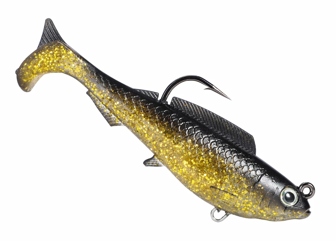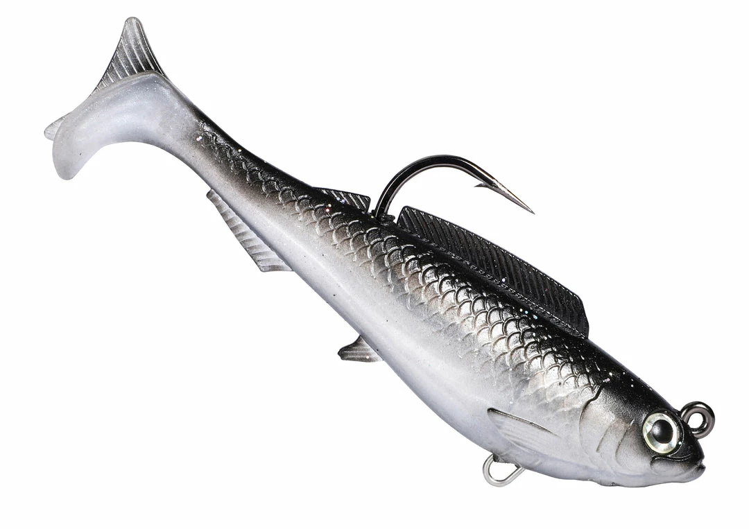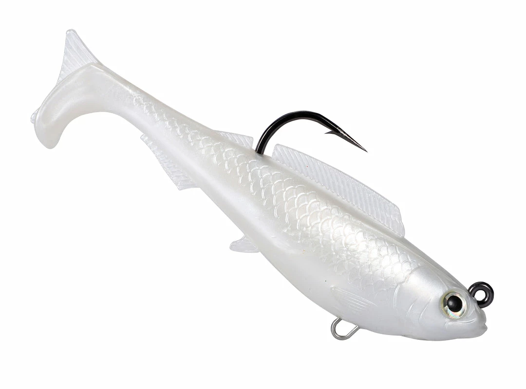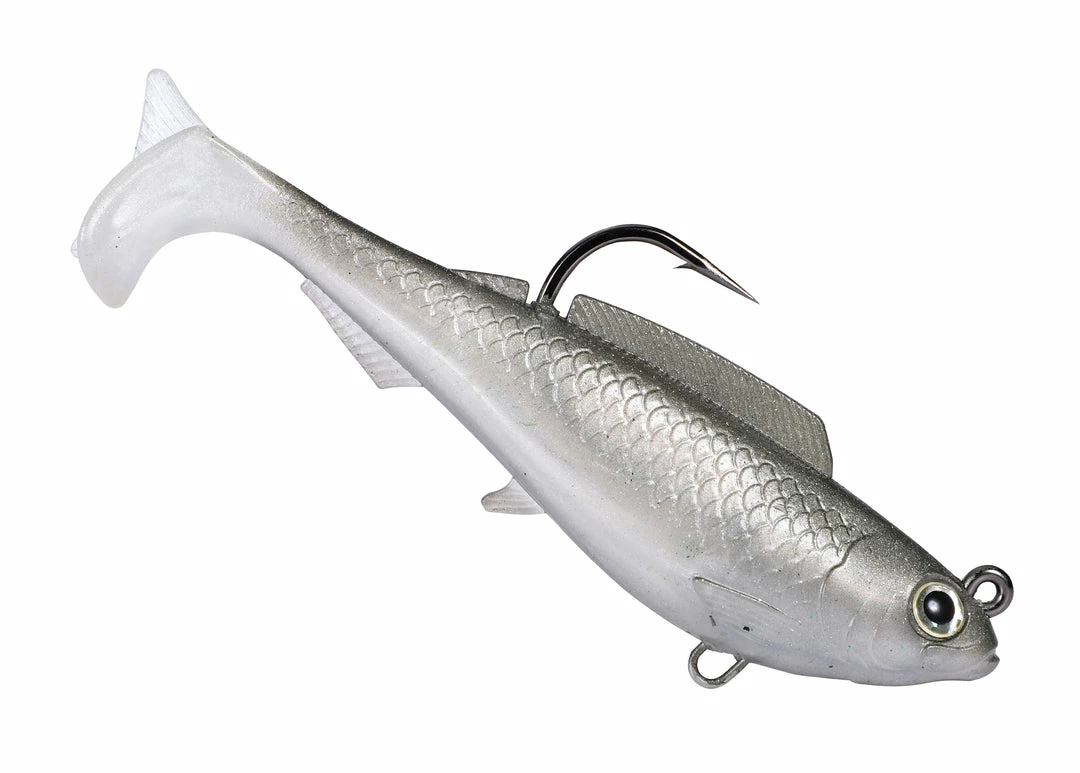 Heavy-duty 5/0 or 7/0 Mustad UltraPoint hooks in 4 inch and 5 inch bait sizes, respectively, offer an ideal match for big, tough fresh- and saltwater gamefish. Jighead also includes a ventral eyelet for adding a second belly hook. Molded around zinc weights, the HerculeZ casts toward the horizon and sinks at an optimal rate for a variety of presentations. Swimbait profile features 3D eyes, ultra-detailed fins, gills, and anatomy, each hand-painted in popular Z-Man color patterns.